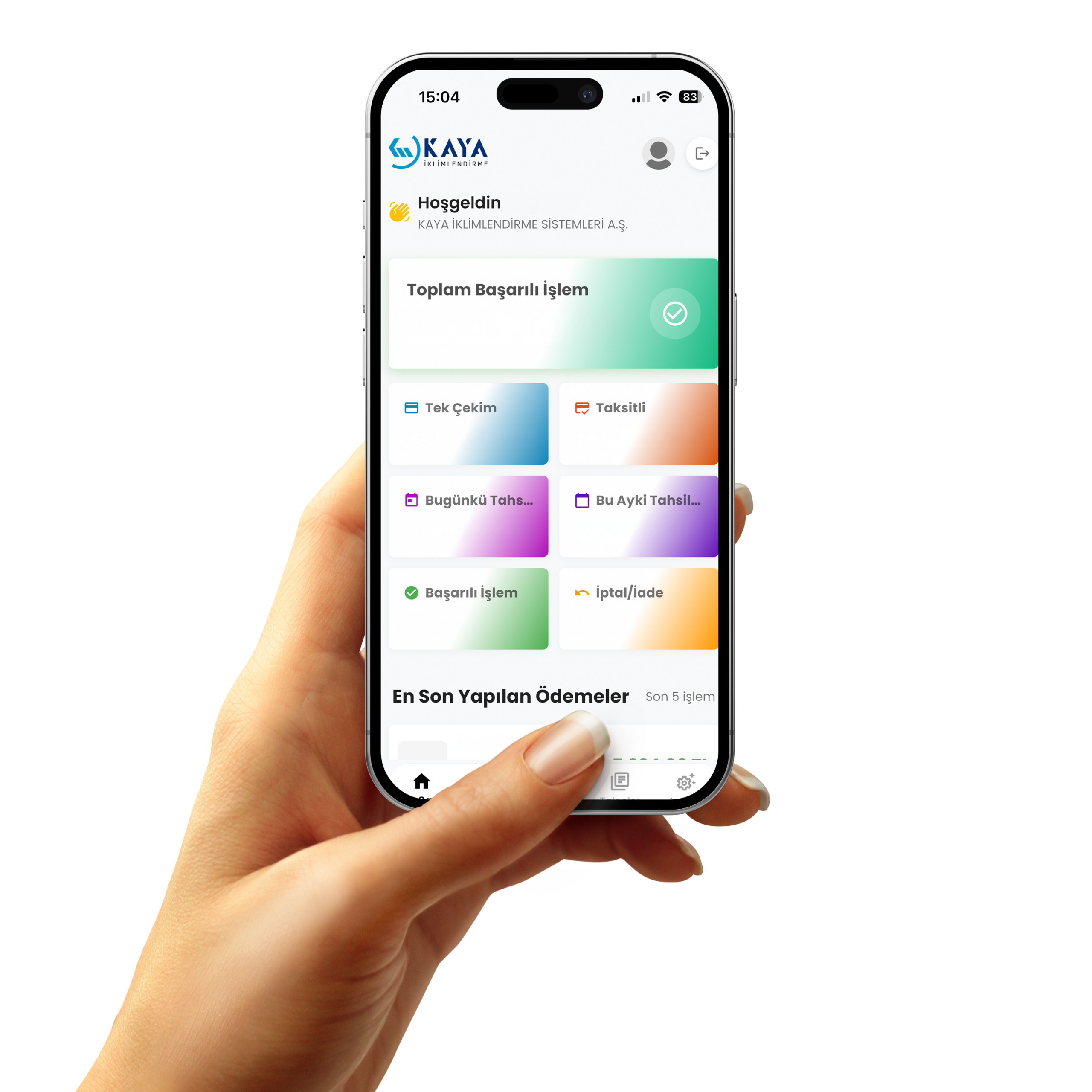 Kaya İklimlendirme güvencesiyle geliştirilen Kaya POS, tahsilat süreçlerinizi dijitalleştirerek hızlandırır. Tek bir platform üzerinden tüm ödemelerinizi takip edebilir, finansal kontrolünüzü her an, her yerden sağlayabilirsiniz.